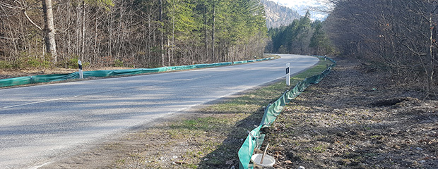 Auf ihrem Weg müssen die Amphibien oft stark befahrene Straßen überqueren. Entlang der Bundesstraßen und Staatsstraßen in den Landkreisen Rosenheim, Ebersberg, Miesbach und Mühldorf wurden deshalb mobile Amphibienschutzzäune aufgestellt und Eimer eingegraben; überall dort, wo es entlang der Strecken keine stationären Schutzeinrichtungen gibt, die die Tiere beim Queren schützen. Das Aufstellen der Zäune haben die Straßenmeistereien des Staatlichen Bauamtes Rosenheim in Zusammenarbeit mit Landschaftspflegefirmen und Naturschutzverbänden übernommen.