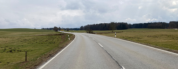 Davor und danach wurde schon saniert, nun folgt der Lückenschluss: Südwestlich von Warngau lässt das Staatliche Bauamt Rosenheim die B 318 auf einer Länge von rund 750 Metern sanieren. Rund 10 cm der alten Fahrbahn werden im Zuge dieser Maßnahme abgefräst und anschließend eine neue Binder- und Deckschicht eingebaut – insgesamt rund 1.500 Tonnen Asphalt. Los gehen die Bauarbeiten am Montag, 30. Juni.