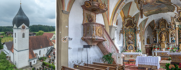 Die Kirche St. Leonhard stammt aus der Mitte des 15. Jahrhunderts und wurde zuletzt in den 1940er-Jahren generalsaniert. Vor allem an der barocken Ausstattung und am Kirchturm hat die Zeit deutlich sichtbare Spuren hinterlassen. Die größte Herausforderung sind jedoch die statischen Probleme am Dachstuhl. Den Großteil der Kosten für die Sanierung tragen der Freistaat und das Erzbischöfliche Ordinariat. Großzügige Zuschüsse kommen zudem von der Gemeinde Ramerberg sowie von der örtlichen Kirchenstiftung, die über Jahrzehnte Spenden für die Sanierung gesammelt hat.