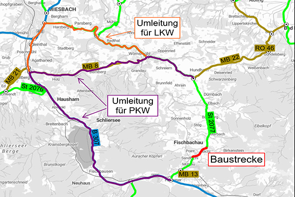 Läuft alles nach Plan und spielt das Wetter mit, ist die Baufirma Ende Oktober mit den umfangreichen Arbeiten fertig. Während der gesamten Bauzeit muss die Ortsdurchfahrt für den Verkehr gesperrt werden. Autos werden über die Kreisstraße MB 8 umgeleitet. LKW umfahren die Baustrecke weiträumiger über Miesbach.