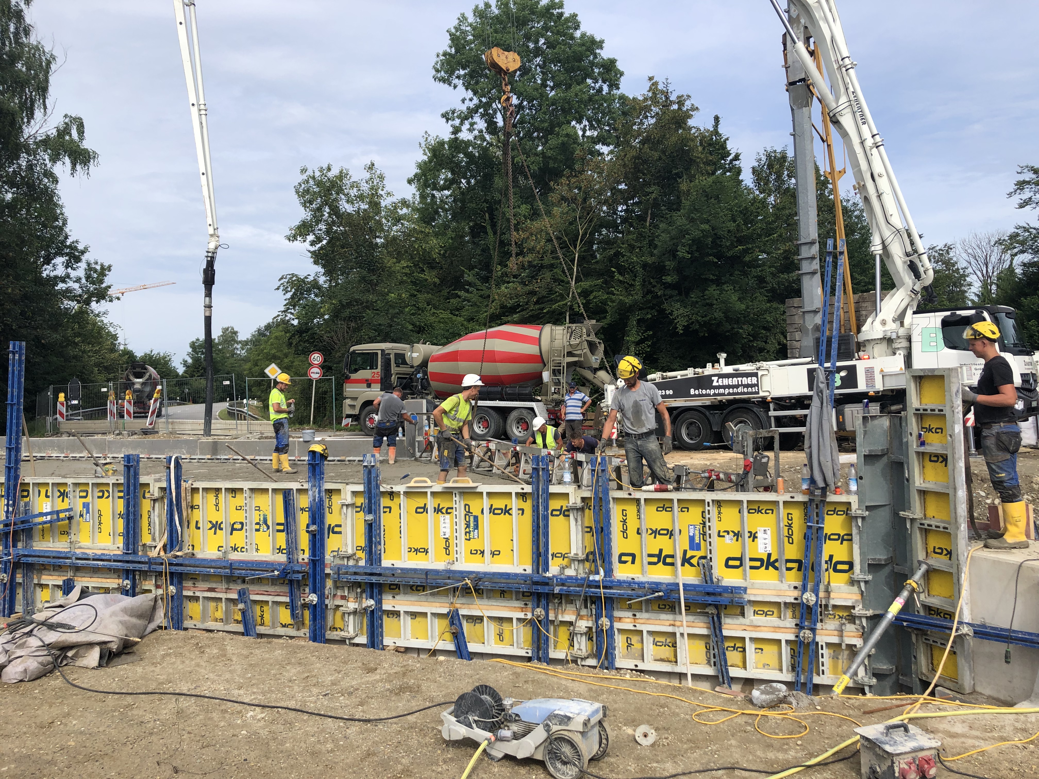 Bei der Grünbachbrücke ging dieser Plan voll auf. Mitte April wurde mit dem Abbruch der alten Brücke begonnen. Dann folgte der eigentliche Neubau. Dafür wurden die Fundamente, die Stiele und der Riegel der Rahmenbrücke errichtet. Anschließend erfolgt die Abdichtung, die Herstellung der Fahrbahn sowie der Einbau der Brückenausstattung und das Aufbringen der Straßenmarkierungen.