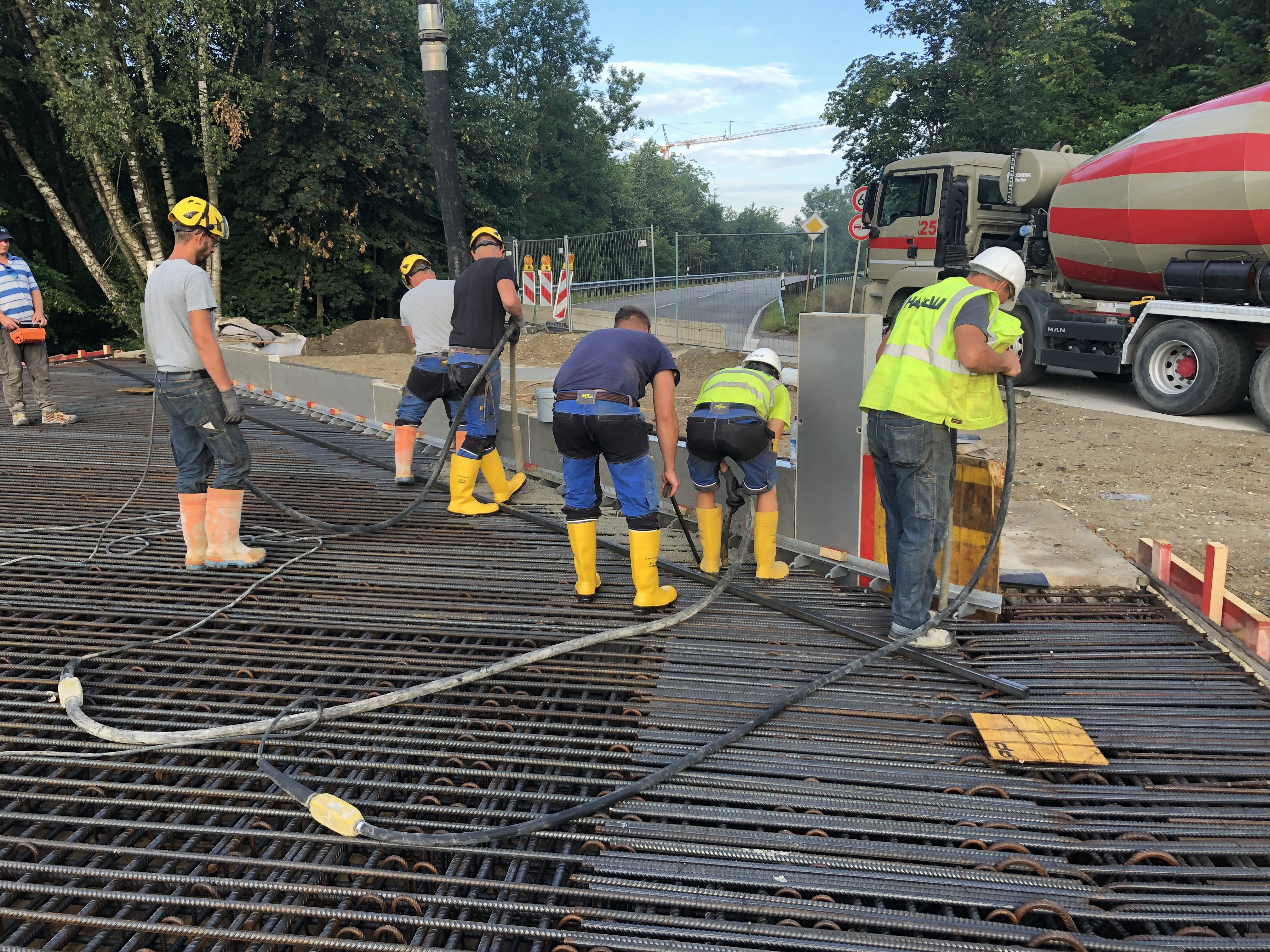 Sie kosten Zeit, oftmals Nerven und sind eine zusätzliche Belastung für die Umwelt: Umleitungen. Was, wenn sich die Bauzeit deshalb auf ein Minimum reduzieren würde? In der Gemeinde Polling konnte man das nun eindrucksvoll erleben. In Polling, im Landkreis Mühldorf am Inn, führt die Staatsstraße 2550 über den Grünbach. Rund 90 Jahre hat die Brücke ihren Dienst getan und damit ihr Soll voll erfüllt. Da eine Sanierung angesichts des Alters und der Schäden nicht mehr wirtschaftlich war, entschied sich das Staatliche Bauamt Rosenheim die Stahlbetonbrücke gegen einen Neubau zu ersetzen.