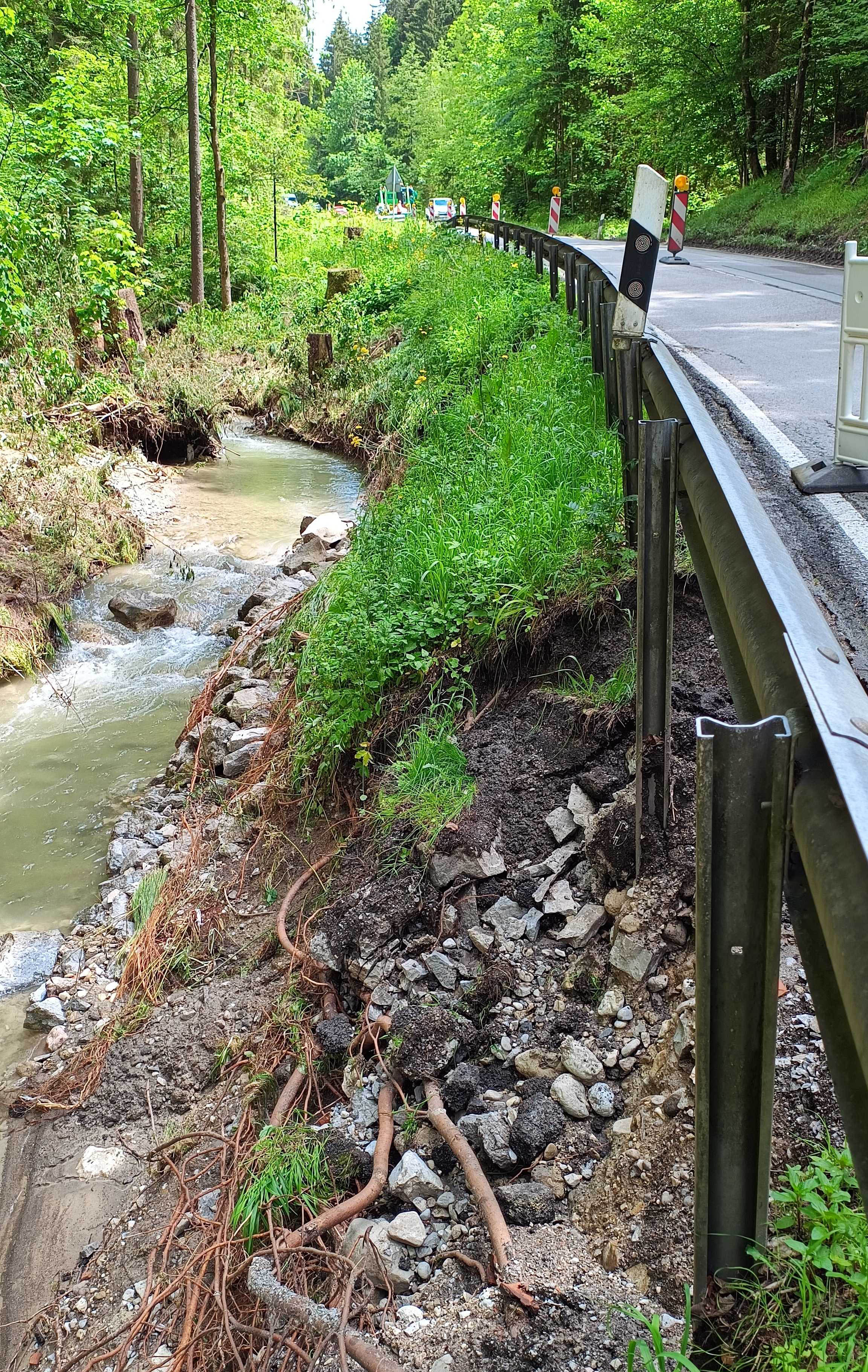 Montag, 3. Juni: dieses Datum wird vielen noch gut im Gedächtnis sein. An diesem Tag zog ein schweres Gewitter über die Region; nicht das letzte, wie wir inzwischen wissen. Die Schäden, die der heftige Sturm und der Starkregen hinterlassen hatten, sind enorm. Besonders schlimm erwischt hat es die Staatsstraße 2077 bei Wörnsmühl, die auf halber Breite unterspült wurde.