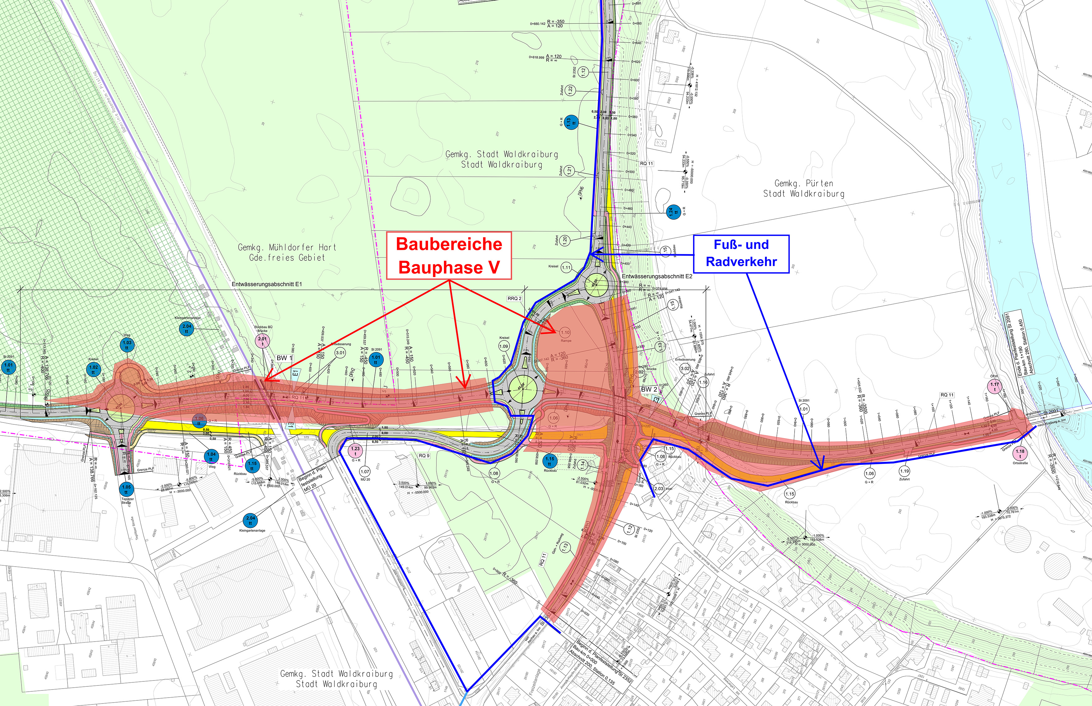 Damit diese ganzen Arbeiten reibungslos ablaufen können, muss der gesamte Bereich zwischen Innkanal und neuer Bahnhofstraße sowie die Kraiburger Straße im Baubereich für den Verkehr gesperrt werden. Damit der Verkehr trotzdem sicher läuft, sind verschiedene Umleitungen nötig.