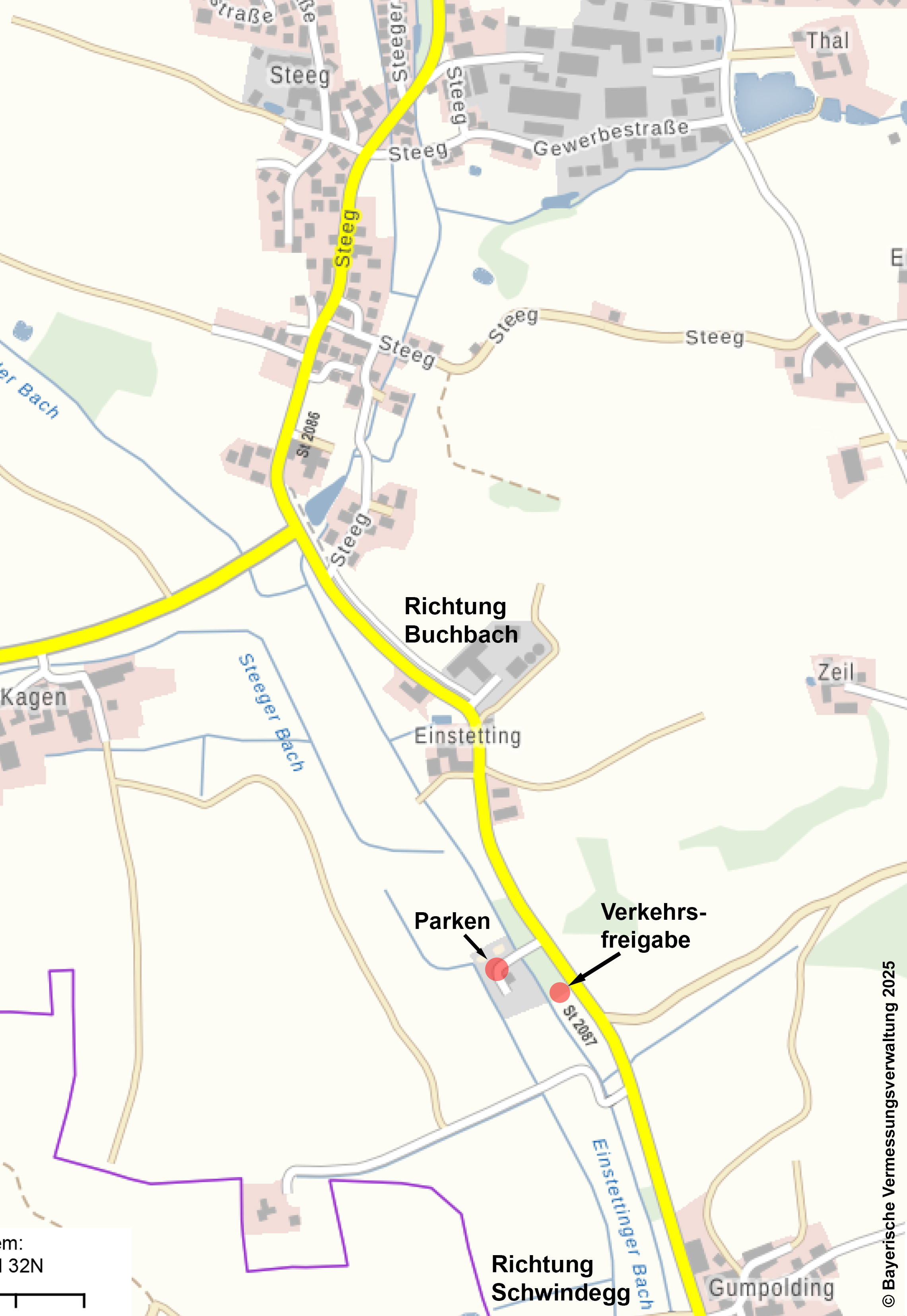 Im Anschluss an die Verkehrsfreigabe laden die beiden Ersten Bürgermeister, Roland Einwang (Markt Buchbach) und Thomas Kamhuber (Gemeinde Schwindegg) zu einem Festempfang ins Gasthaus „Beim Obern e.V.“ nach Buchbach ein.